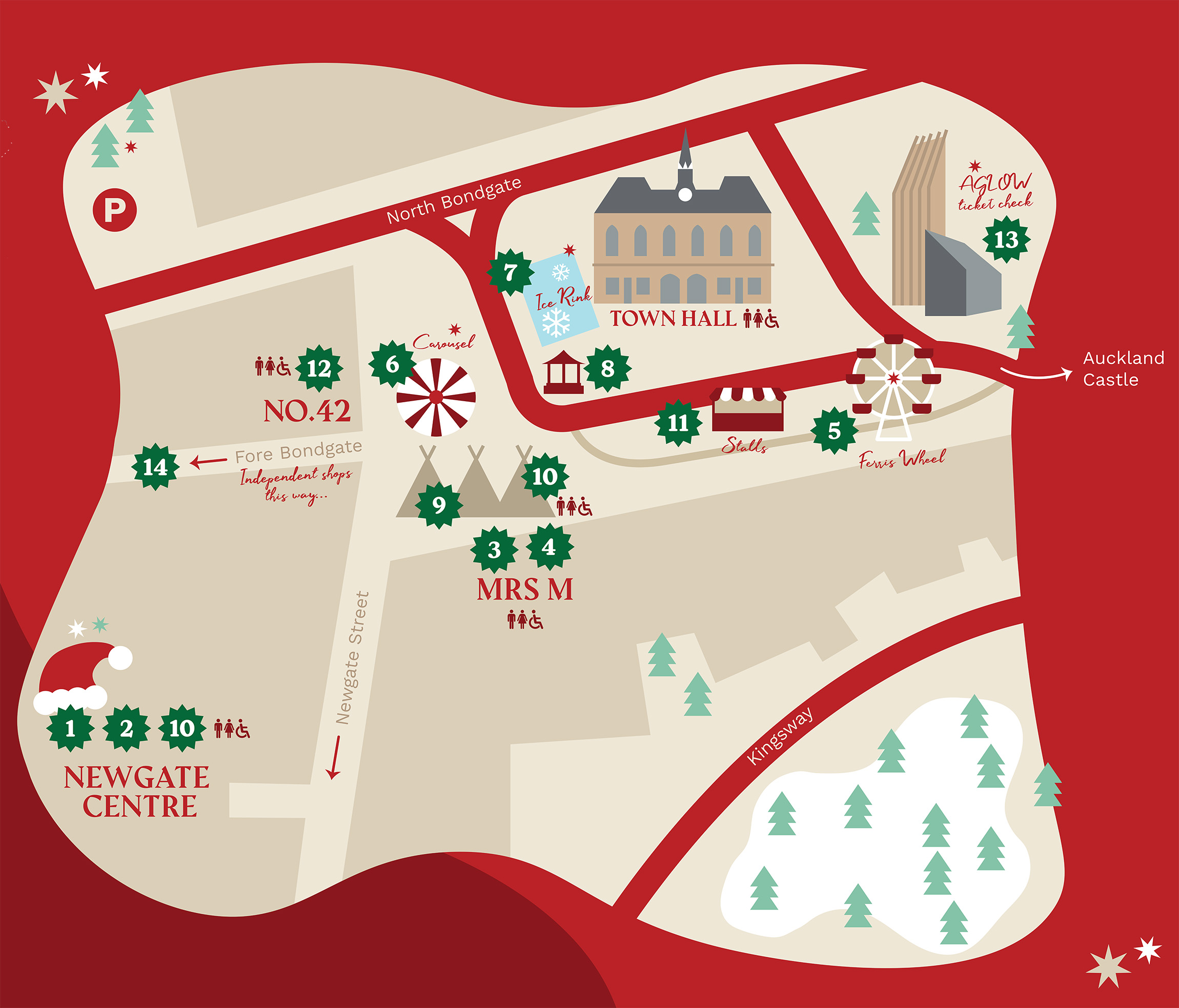 Toilets, including accessible toilets will be available across the Christmas Town site. These will be clearly displayed on our site map. Public toilets will also be available to use inside St Anne’s Church, The Town Hall and the Newgate Shopping Centre.